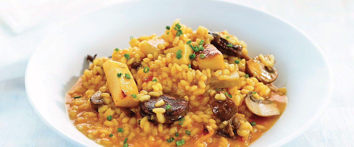 Il faut bien sur du très bon riz à risotto, soit d’ Arborio, soit du Carnaroli – qui est considéré comme le roi des riz à Risotto !. Comptez environ 500 grammes pour 4 personnes.