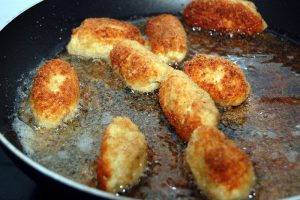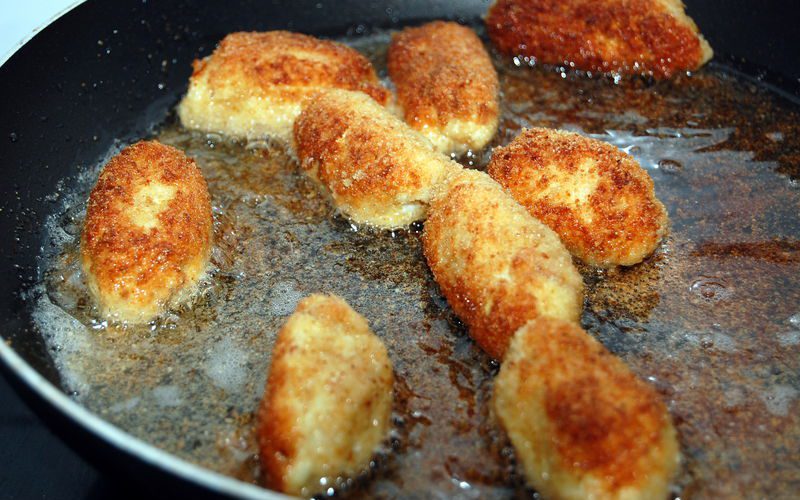Les rouler dans la chapelure et les faire frire à la poêle dans une bonne quantité d’huile.