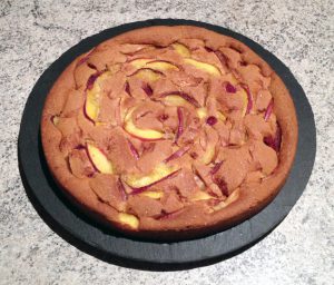 Versez cette pâte dans un moule (diam. 25cm environ, pensez à le beurrer au préalable s’il n’est pas en silicone !) et étalez-la bien à l’aide d’une spatule car elle est assez épaisse.