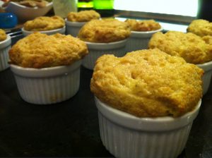 Faites cuire 15 minutes à 200°C. A la fin de cuisson, laissez la porte du four ouverte 5 minutes afin que les soufflés ne retombent pas trop rapidement.