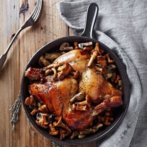 Quand toutes les cuisses sont grillées, les remettre dans la cocotte, ajouter les échalotes finement ciselées et une seule gousse d’aile passée au presse ail. Bien remuer.