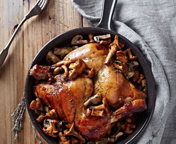 Dans une cocotte , faire chauffer un peu d’huile avec un peu de beurre puis faire dorer les cuisses de poulet . Les retirer au fur et à mesure et réserver dans un plat.