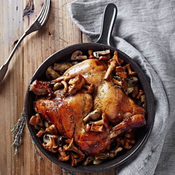 Dans une cocotte , faire chauffer un peu d’huile avec un peu de beurre puis faire dorer les cuisses de poulet . Les retirer au fur et à mesure et réserver dans un plat.