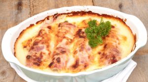 Nappez les roulades de saumon avec la sauce au fromage et parsemez le tout avec le reste de fromage râpé. Glissez le plat au four préchauffé à 200 °C pendant ± 10 min et enclenchez le gril afin que le fromage soit bien doré.