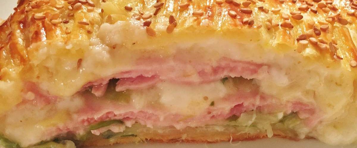 Recommencer l’opération, béchamel, poireaux, cette fois 4 tranches de jambon et 4 de comté.