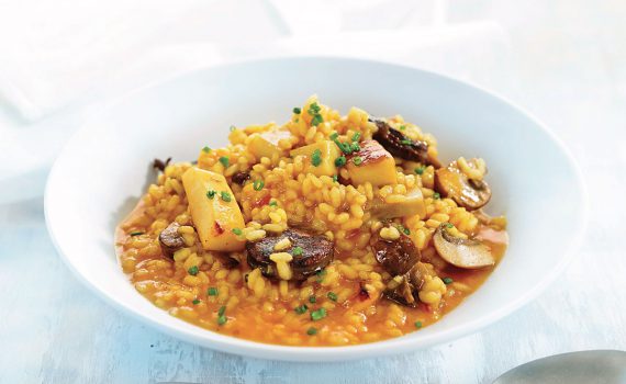 Ingrédients pour 4 personnes : 500 grammes de riz à risotto 18 grosses crevettes crues 400 grammes de blanc de poulet fermier 300 grammes de petits pois deux oignons deux carottes deux belles cotes de céleri branche quelques brins de persil plat un bon verre de bon vin blanc sec […]