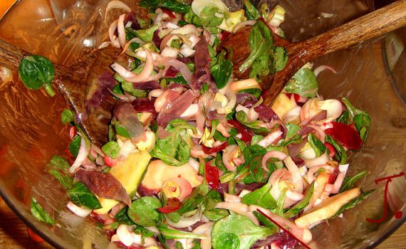 Ingrédient pour 4 personnes : 4 gros chicons 100 g de salade de blé 1 frisée blanche 2 pommes du pays 2 à 3 blancs de poireau cuits et découpés en rondelles 1 tasse de gros haricot de Soisson cuits et froids 2 gros oignons cuits entier au four choux […]